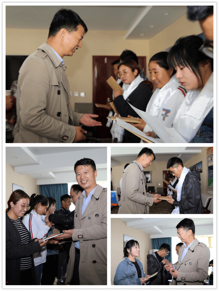 隨后,王斌董事長向7名規(guī)培生門頒發(fā)了《阜康員工守則》,并敬獻了潔白的哈達,佩戴了阜康院徽,他臨別叮囑:"謹(jǐn)記阜康囑托,謹(jǐn)守阜康準(zhǔn)則,不辱阜康之名,為阜康爭榮!希望你們能夠腳踏實地在華西醫(yī)院和成都市第三人民醫(yī)院帶教老師的指導(dǎo)下完成規(guī)培計劃,并在三年內(nèi)考過執(zhí)業(yè)醫(yī)師資格證和規(guī)范化培訓(xùn)資格證,按時歸來服務(wù)阜康、報效西藏!”