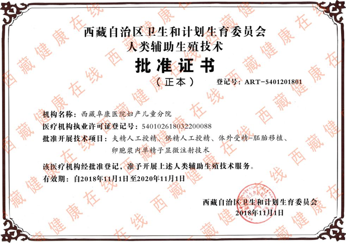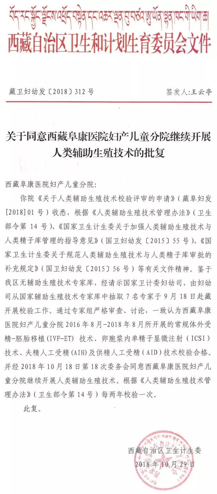 最后,通過國家衛(wèi)健委專家組集體表決:西藏阜康醫(yī)院婦產(chǎn)兒童分院生殖醫(yī)學中心開展的常規(guī)體外受精-胚胎移植(IVF-ET)技術(shù)、卵胞漿內(nèi)單精子顯微注射(ICSI)技術(shù)、夫精人工授精(AIH)及供精人工授精(AID)技術(shù)工作校驗合格。專家組一行還對西藏阜康醫(yī)院的企業(yè)文化建設、阜康多年來熱心參與社會公益事業(yè)的善舉表示贊賞。