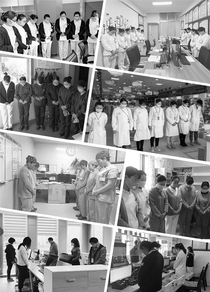 上午10點(diǎn),隨著防空警報(bào)拉響,阜康醫(yī)療全體黨員和醫(yī)務(wù)工作者、行后人員分別在阜康醫(yī)院各院區(qū)、各科室、各藥房肅穆站立、低頭默哀。在這次疫情的特殊期間,有些人倒下了,但更多的人勇敢地扛起責(zé)任,在黨中央的堅(jiān)強(qiáng)領(lǐng)導(dǎo)下和疫情頑強(qiáng)斗爭,如今我們已經(jīng)基本控制這場斗爭的局面,正在向全面勝利努力奮進(jìn)。